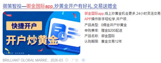 上图为御金国际在某平台进行的付费投流广告截图
